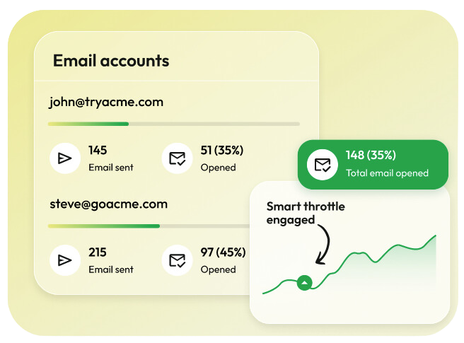 Smart Throttle™ makes sure your cold emails get delivered by automatically switching and managing sending accounts automatically while focusing on open rates
